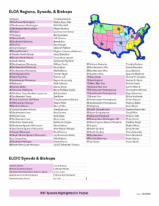 Click on the image at left to see the ELCA synods and regions; the RIC Synods are highlighted in purple.