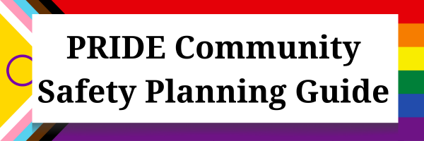 - PRIDE Community Safety Planning Guide (PDF) - Use this to plan for community safety in the weeks leading up to PRIDE (or other event).