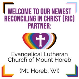 Help ReconcilingWorks welcome the newest Reconciling in Christ (RIC) community: Evangelical Lutheran Church of Mount Horeb (Mount Horeb, WI).