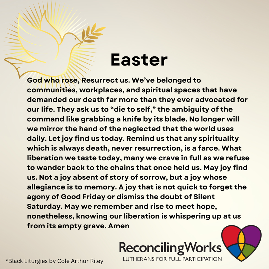 May we remember and rise to meet hope, nonetheless, knowing our liberation is whispering up at us from its empty grave. Amen