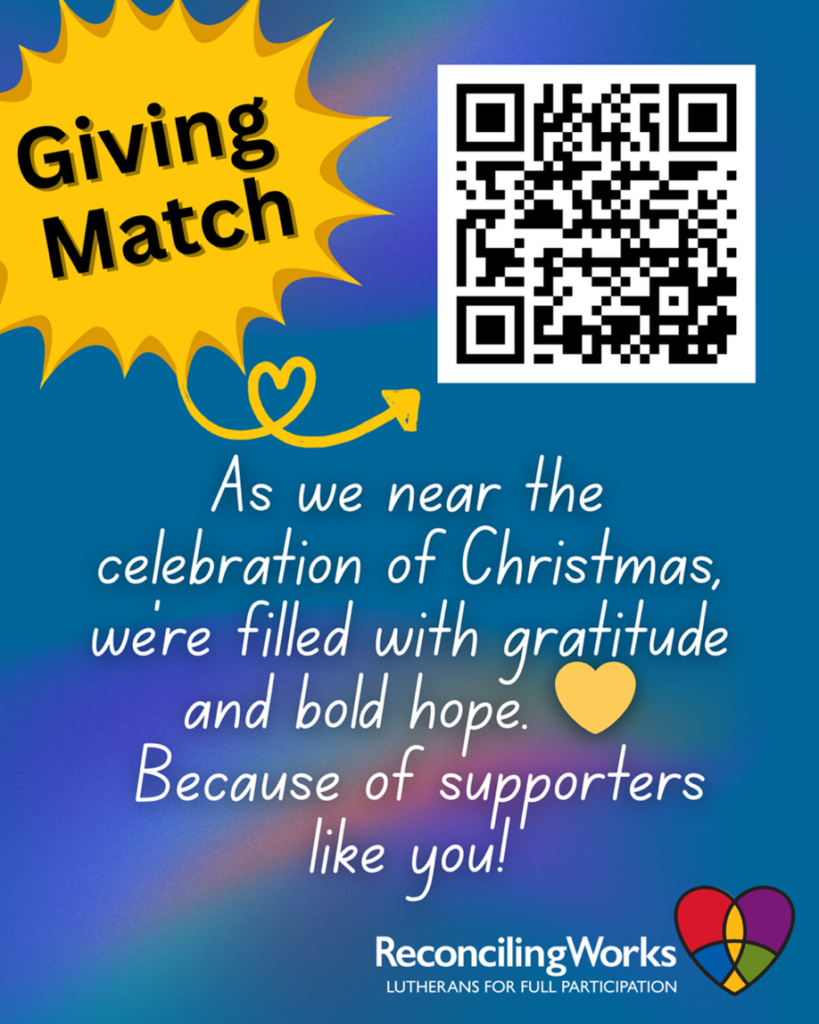As we near the celebration of Christmas, we’re filled with gratitude—and bold hope. 💛 Because of supporters like you, ReconcilingWorks continues building a church where LGBTQIA+ people are fully seen, celebrated, and affirmed. Right now, your gift can go even further. Our Board has pledged a $5,000 Year-End Match, doubling every gift made through December […]