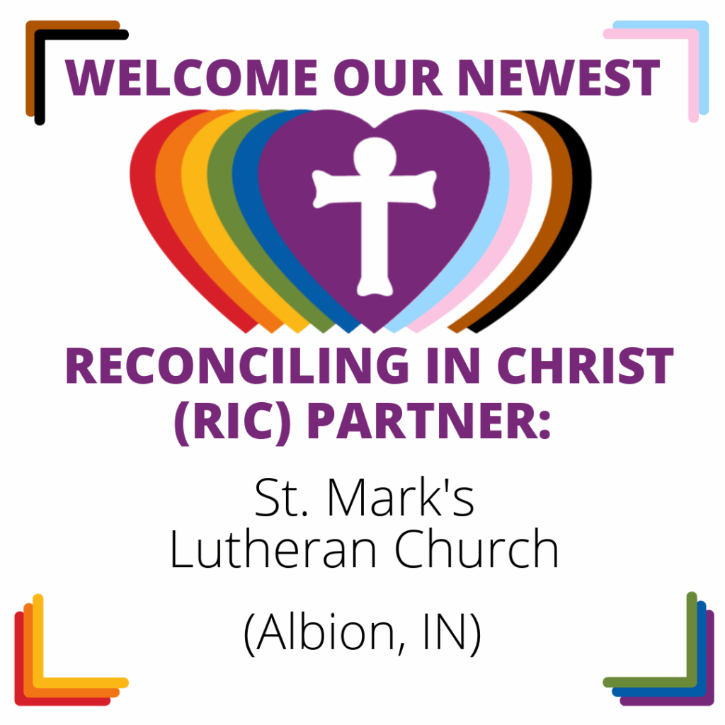 Help ReconcilingWorks welcome a new Reconciling in Christ (RIC) community: St. Mark’s Lutheran Church in Albion, Indiana. Their welcome statement reads: “St. Mark’s Lutheran Church in Albion, Indiana, expresses an open, inclusive, and Christ-centered invitation to all people, especially those who have felt marginalized or rejected by other religious communities. Radical Inclusivity: We welcome people […]