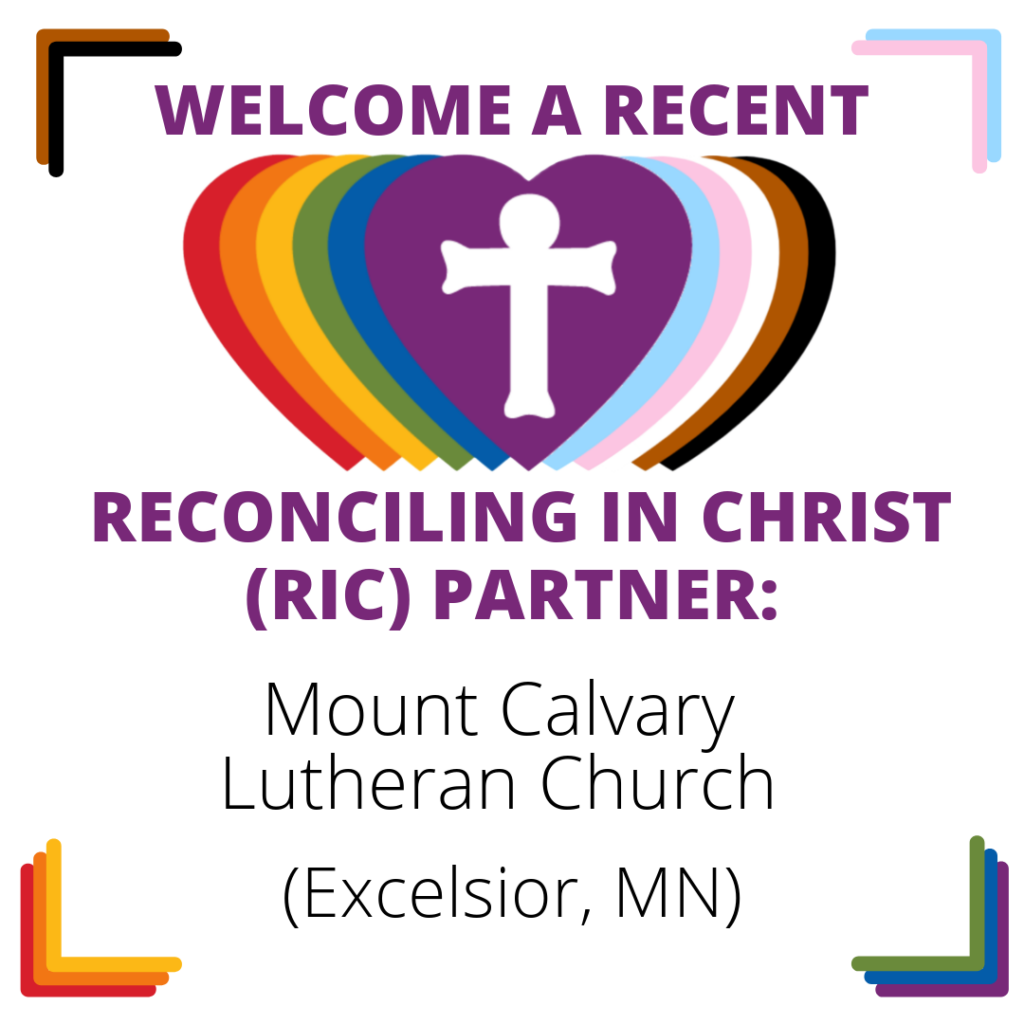 Help ReconcilingWorks welcome a recent Reconciling in Christ (RIC) community: Mount Calvary Lutheran Church in Excelsior, Minnesota. Their welcome statement reads: “As ambassadors for Christ, Mount Calvary is called to be a congregation that affirms and embraces all people valuing every race, ethnicity, culture, religion, age, gender identity, gender expression, sexual orientation, ability, occupation or […]