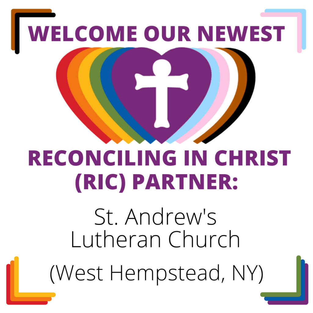 Help ReconcilingWorks welcome the newest Reconciling in Christ (RIC) community: St. Andrew’s Lutheran Church in West Hempstead, New York. Their welcome statement reads: “Welcome to St. Andrew’s, where all are embraced in reconciling love of Christ. We affirm the sacred worth of every individual, regardless of race, culture, ethnicity, age, gender expression or identity, […]