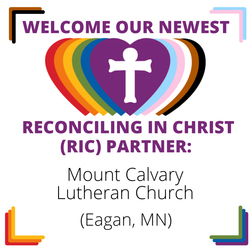 Help ReconcilingWorks welcome the newest Reconciling in Christ (RIC) community: Mount Calvary Lutheran Church in Eagan, Minnesota. Their welcome statement reads: “We, the community of Mount Calvary, believe God’s love is a gift to be shared unconditionally. We commit to welcoming people of all sexual orientations, gender identities and gender expressions, races and cultures, […]